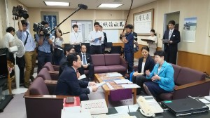 5月24日㈬ ①古川仲二教育長とのメッセージ交換  ②記者会見  ③公立教職員向けユニセフ研修会  ④県私学協会との情報交換会