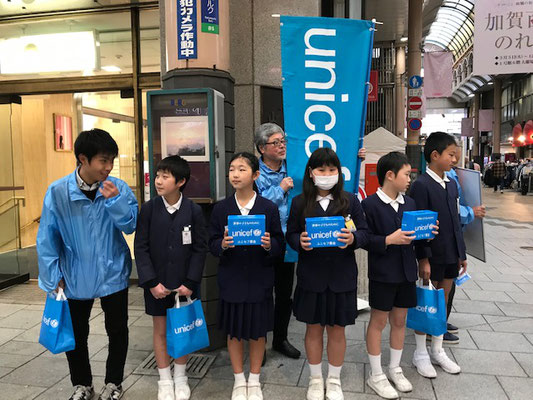 天文館の山形屋前で2ヶ所に分かれて募金活動を行い、広木小学校の児童の皆様のご協力のおかげで、大変多くの募金が集まりました。
