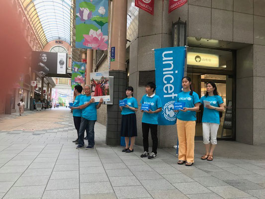 鹿児島市立鹿児島女子高校の先生方をお招きし、ユニセフ学習会・ユニセフ募金活動を行いました お知らせ 2019.08.192025.02.02 8月7日(水)、鹿児島市立鹿児島女子高校の先生方をお招きし、ユニセフ学習会・ユニセフ募金活動を行いました。学習会では世界の子どもたちの現状を知っていただき、その後街頭募金活動を行いましたが、多くの皆様のあたたかい募金が寄せられました。ありがとうございました。募金は全額(公財)日本ユニセフ協会に送金済です。先生方も暑い中、お疲れ様でした。