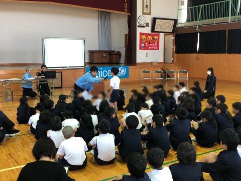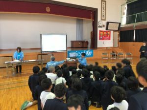 今日は出水市立江内小学校の全学年の児童の皆さん(計78名)に対して出前授業を行いました。