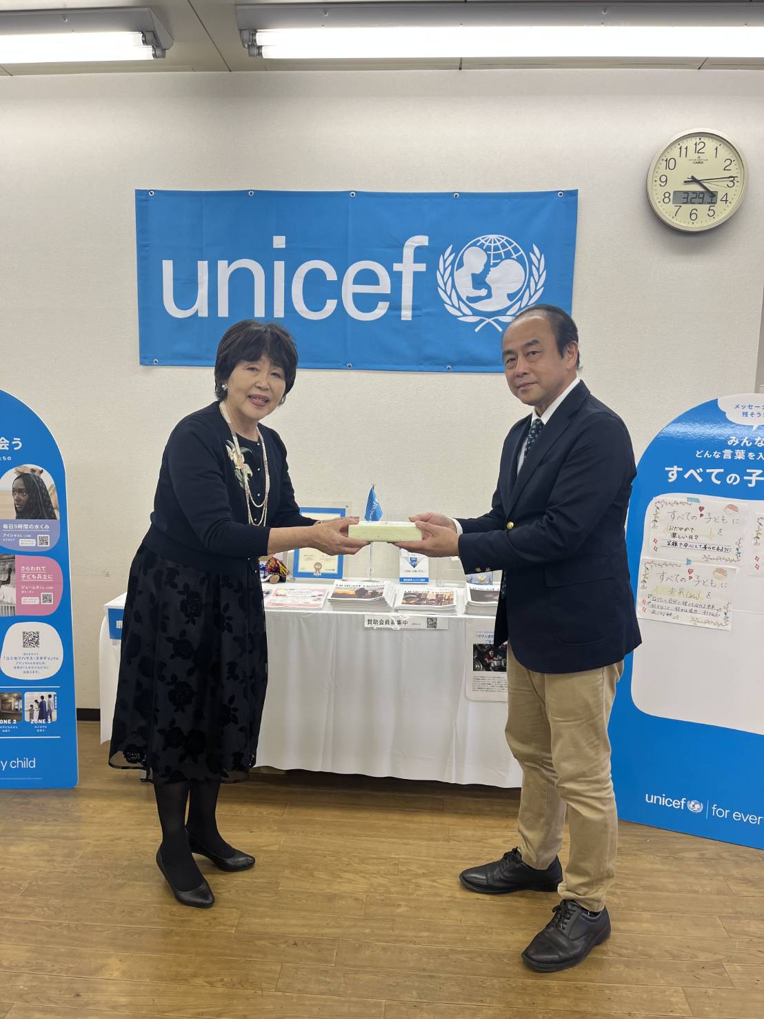 で取り組んでくださったユニセフ募金を届けて下さいました。
