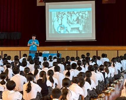 6月3日(火)鹿児島市立西紫原中学校の1年生230人に出前授業をしました。