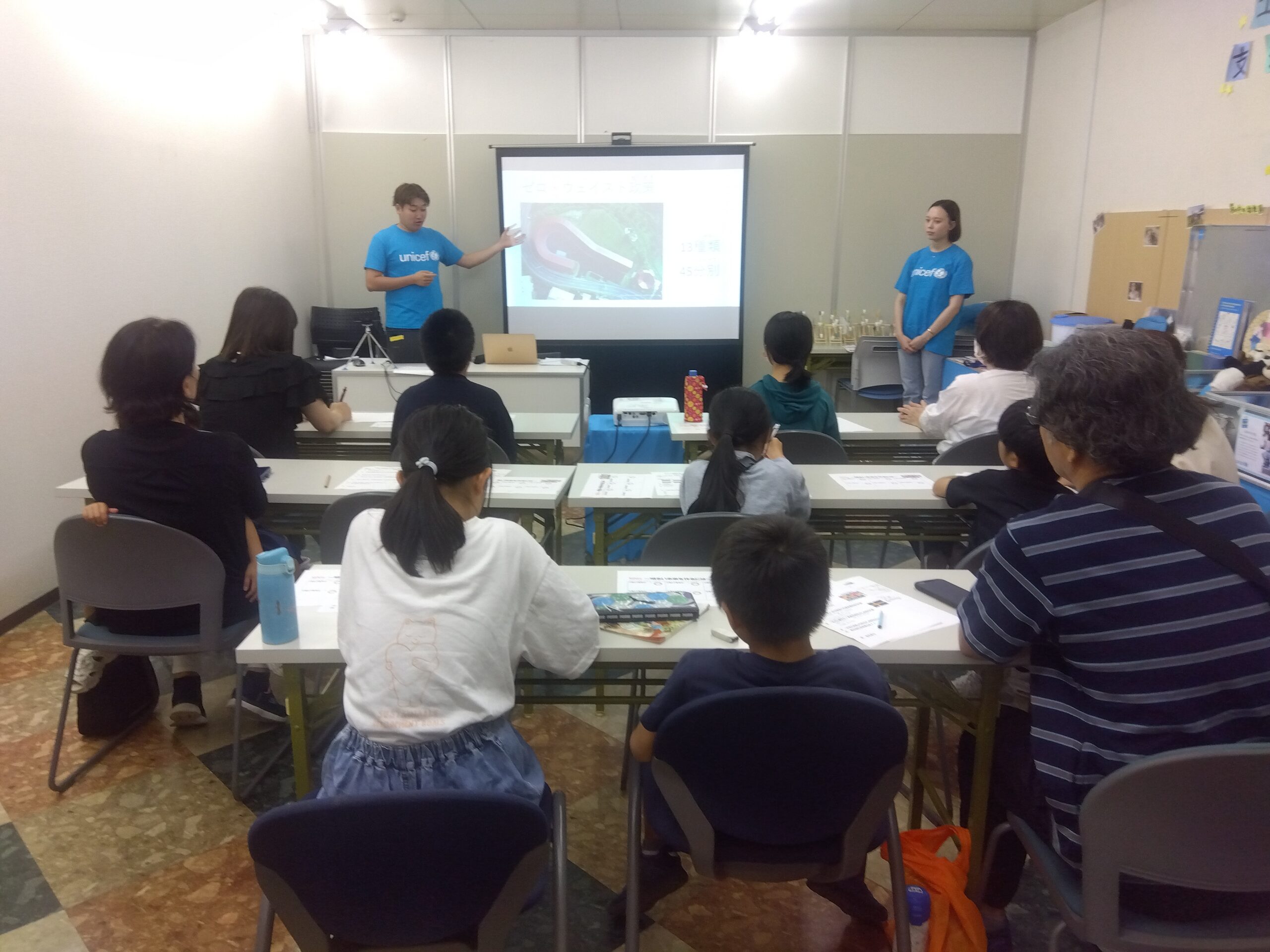 かごしま環境未来館 地域まるごと共育講座 活動報告 2025.08.06 かごしま環境未来館の地域まるごと共育講座を8月2日(土)10:30~12:00に 鹿児島県ユニセフ協会の教室で実施いたしました。小学生6名、園児1名、保護者5名の 参加がありました。今年は「世界のゴミ問題」を取り上げ、キャンパスメンバーで 世界のゴミ問題の現状、日本のゴミの仕分け等の実情を説明の後、ドミニカ共和国在住 の方とオンラインでつなぎ同国のゴミ問題についても学習しました。廃材等で作製した 観覧車に自分が興味あるSDGsの項目のシールを貼ったり、ペットボトルの中に風船を 膨らませての廃材飾りを製作しました。